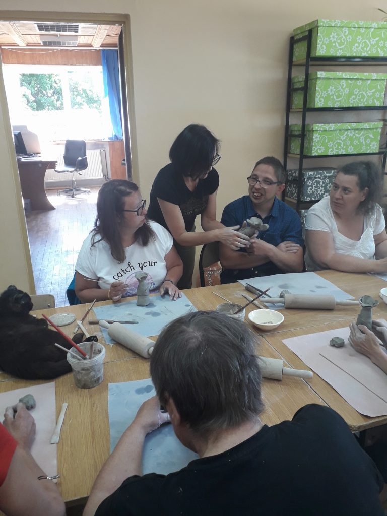 W dniu 07.06.2018 r. po raz kolejny udaliśmy się do Polanowskiego Ośrodka Kultury i Sportu na lepienie z gliny z panią Ewą Szewczyk. Pani Ewa zaproponowała Nam ulepienie tym razem kwiatka. Prędko zabraliśmy się do pracy a efekt końcowy będzie niestety widoczny dopiero za miesiąc, gdy Pani Ewa wypali Nasze kwiaty i pojedziemy je poszkliwić, żeby były jeszcze piękniejsze. Dziękujemy serdecznie Pani Ewie za kolejne ciekawe spotkanie i fantastyczną pracę.