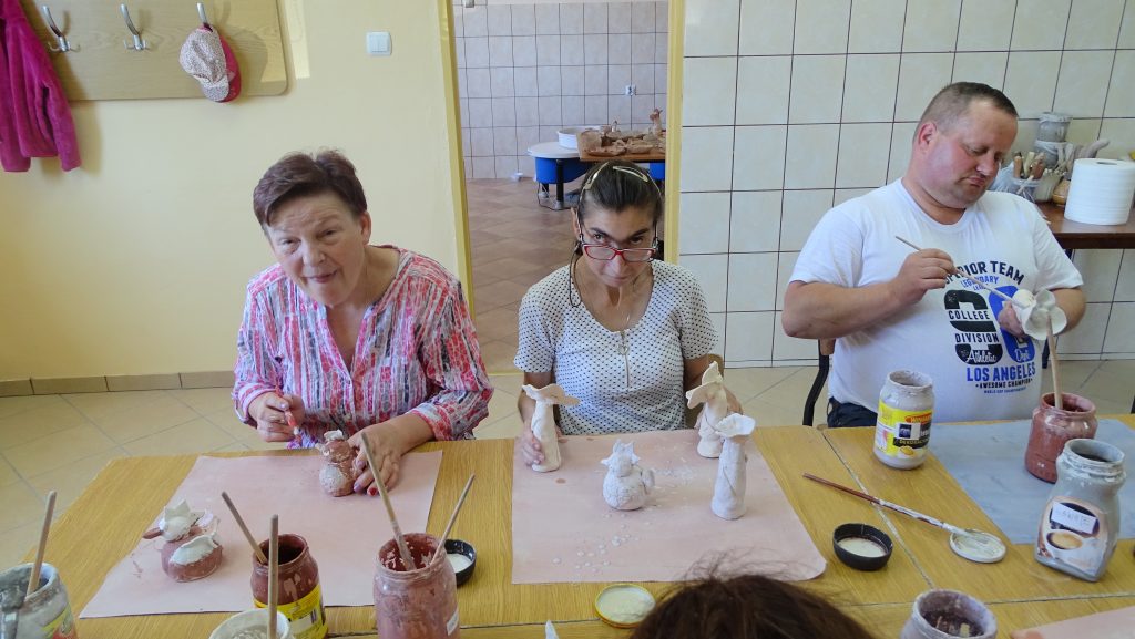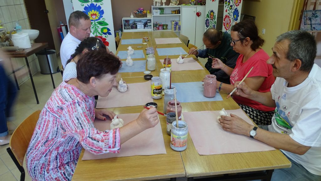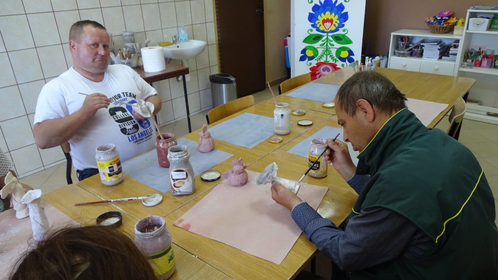 W dniu 20.06.2018 r. udaliśmy się do Polanowskiego Ośrodka Kultury i Sportu w celu szkliwienia wykonanych dotychczas naszych prac z gliny – kurek oraz kwiatków. Pani Ewa Szewczyk wyjaśniła nam w jaki sposób należy szkliwić oraz, że wszystkie farby, którymi malujemy są pastelowe i szare natomiast po wypaleniu będą pięknie i kolorowe. Jeszcze raz dziękujemy Pani Ewie za współpracę i liczymy na dalsze pouczające spotkania.