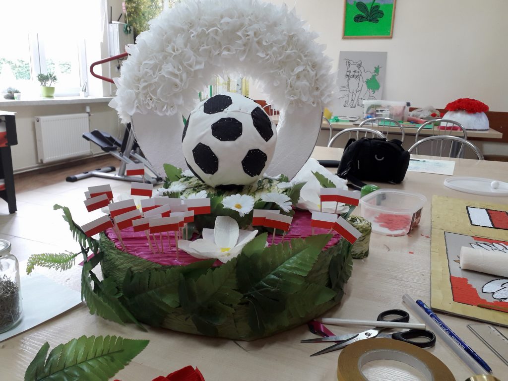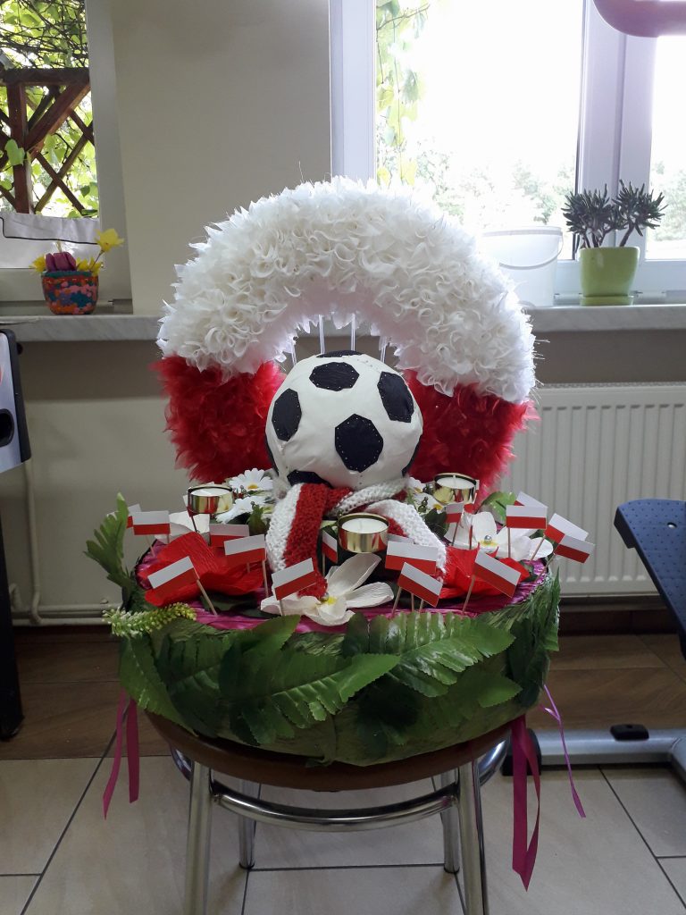 W dniu 20.06.2018 r. rozpoczęliśmy przygotowania wianka na konkurs z okazji Sobótki w Polanowie. Ze względu, że trwa Mundial w Rosji w piłkę nożną nasz wianek był nietypowy i bardzo patriotyczny. Całym sercem również jesteśmy z naszymi piłkarzami i stwierdziliśmy, że nasz wianek będzie właśnie w takim stylu.