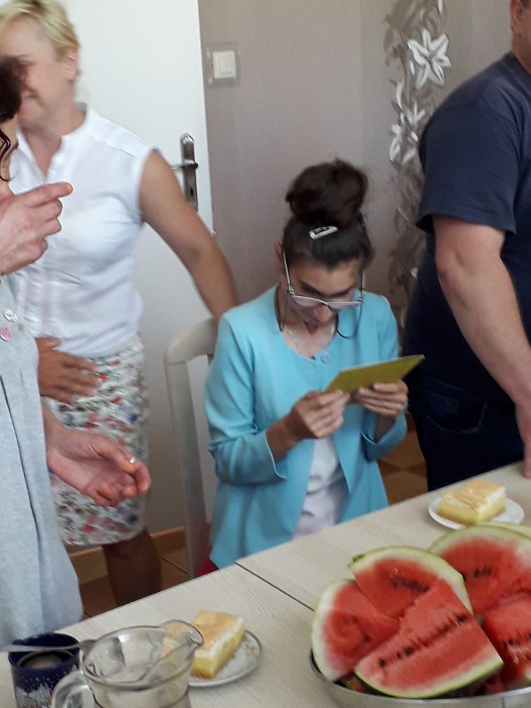 W dniu 20.07.2018 r. tuż przed wakacyjną przerwą nasza Uczestniczka Justyna obchodziła urodziny. Z tej okazji przywiozła pyszne ciasto oraz cukierki. Wszyscy zaśpiewaliśmy „Sto lat” oraz złożyliśmy serdeczne życzenia.