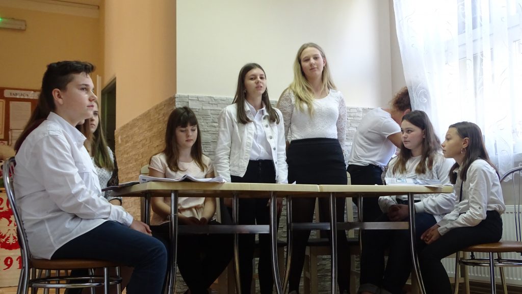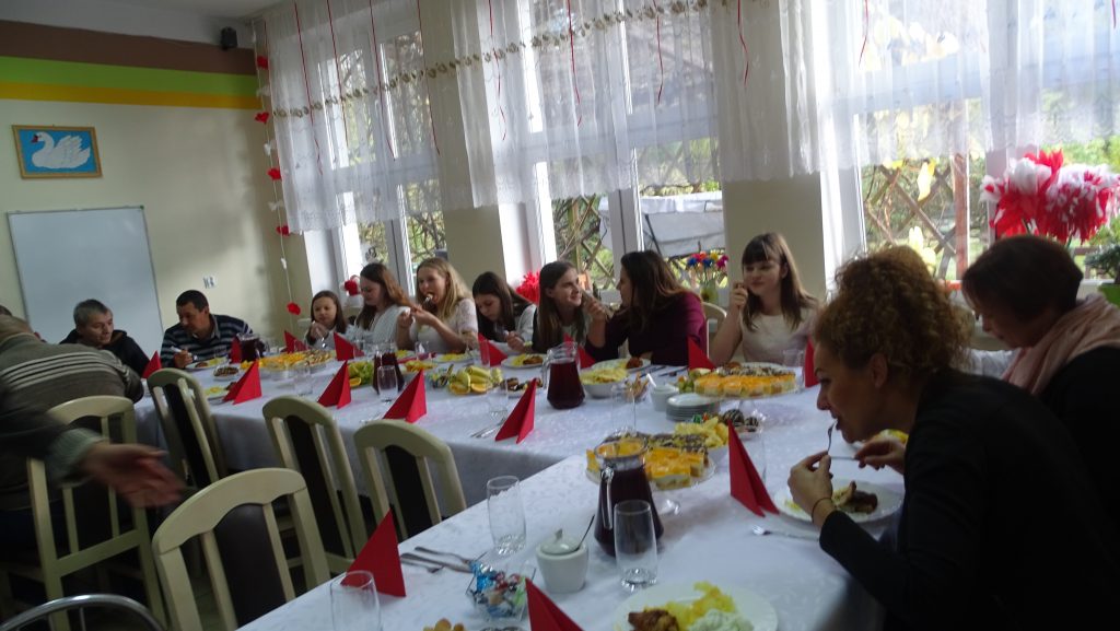 W dniu 24.10.2018 r. w naszym Domu wystąpiło zaprzyjaźnione koło teatralne REVEL ze Szkoły Podstawowej w Polanowie pod opieką Pani K. Poletajew oraz J. Tumanik. Dzieci zaprezentowały krótkie przedstawienie słowno-muzyczne zatytułowane „Kawiarniane Wspomnienia”. Tematyka nawiązywała do życia Jana Pawła II. Jedna z uczennic piękne zaśpiewała utwór „Błogosławieni”. Uczniowie zostali nagrodzeni ogromnymi brawami. Na zakończenie wspólnie zjedliśmy obiad oraz słodki poczęstunek.