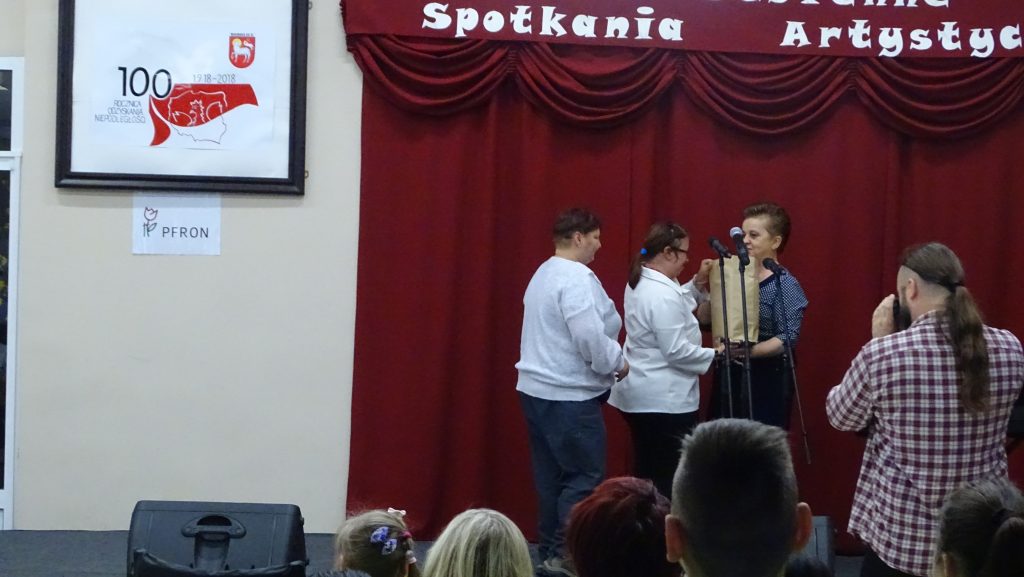 W dniu 25.10.2018 r. udaliśmy się do Domu Kultury w Bobolicach na Jesienne Spotkania Artystyczne. Przygotowaliśmy dwie bardzo wesołe piosenki Sławomir „Miłość w Zakopanem” oraz Kordian „Dziewczyna z Gór”. Publiczność podczas Naszego występu oszalała….były oklaski oraz bisy. Roztańczyliśmy cały Dom Kultury. Po wspaniałych występach wszystkich zaproszonych gości zaproszono nas na słodki poczęstunek. Otrzymaliśmy również nagrody, które będą służyły do tworzenia pięknych prac w naszej pracowni plastycznej. Serdecznie dziękujemy za zaproszenie i wspaniałą zabawę.