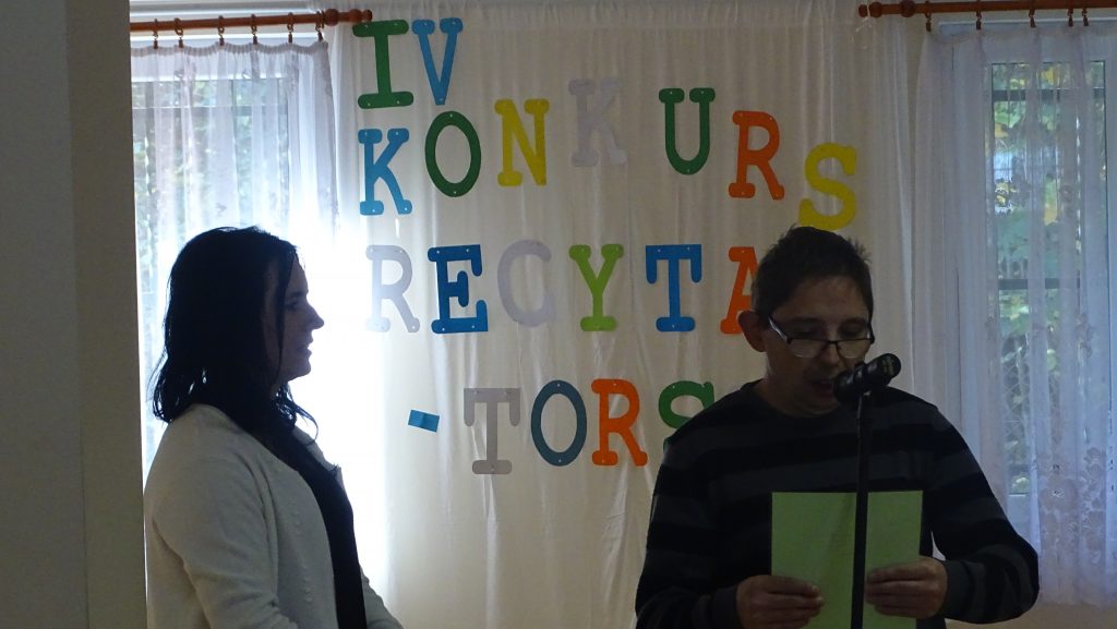 W dniu 17.10.2018 r. zostaliśmy zaproszeni na IV Recytatorski Konkurs „Wiersze dla najmłodszych” do Domu Pomocy Społecznej w Żydowie. Głównym celem spotkania było promowanie czytania oraz doskonalenie umiejętności recytatorskich. Po prezentacji wszystkich wierszy zostaliśmy zaproszenie na słodki poczęstunek oraz obiad. Bardzo dziękujemy za spotkanie, wspaniałą organizację oraz do zobaczenia za kolejny rok.