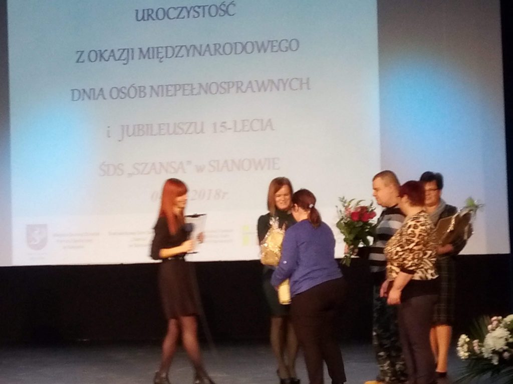 Dnia 04.12.2018 r. zostaliśmy zaproszeni przez Środowiskowy Dom Samopomocy „Szansa” w Sianowie na obchody 15 – lecia działalności ŚDS oraz Międzynarodowego Dnia Osób Niepełnosprawnych. W pracowni plastycznej Uczestnicy wykonali w prezencie Anioła, który ma przynieść szczęście Uczestnikom oraz Pracownikom w kolejnych latach pracy.