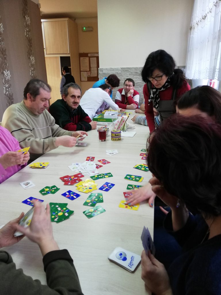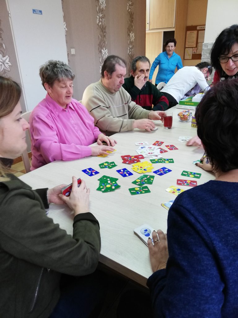 Dnia 10.01.2019 r. odwiedził Nas Środowiskowy Dom Samopomocy „Szansa” z Sianowa. Wspólnie zjedliśmy śniadanie a później zajęliśmy się rozmowami, graniem w różne gry. Uczestnicy z Sianowa zainteresowali nas nową grą Ligretto, każdy z graczy otrzymuje jedną z czterech 40-kartowych talii. Każda z nich ma inną ilustrację z tyłu, dla oznaczenia graczy. Gracz próbują jak najszybciej utworzyć ciągi kart (w porządku rosnącym, w kolorach) na środku stołu. Pierwszy gracz, który pozbędzie się kart ze swojej talii krzyczy STOP i gra się kończy. Było dużo śmiechu. Później zjedliśmy obiad. Dziękujemy za przyjazd oraz dobrą zabawę. W związku z tragicznymi wydarzeniami z dnia 05.01.2019 r. w Koszalinie (tragedia w Escape Room) Uczestnicy postanowili, że uczczą ofiary tragedii minutą ciszy.