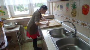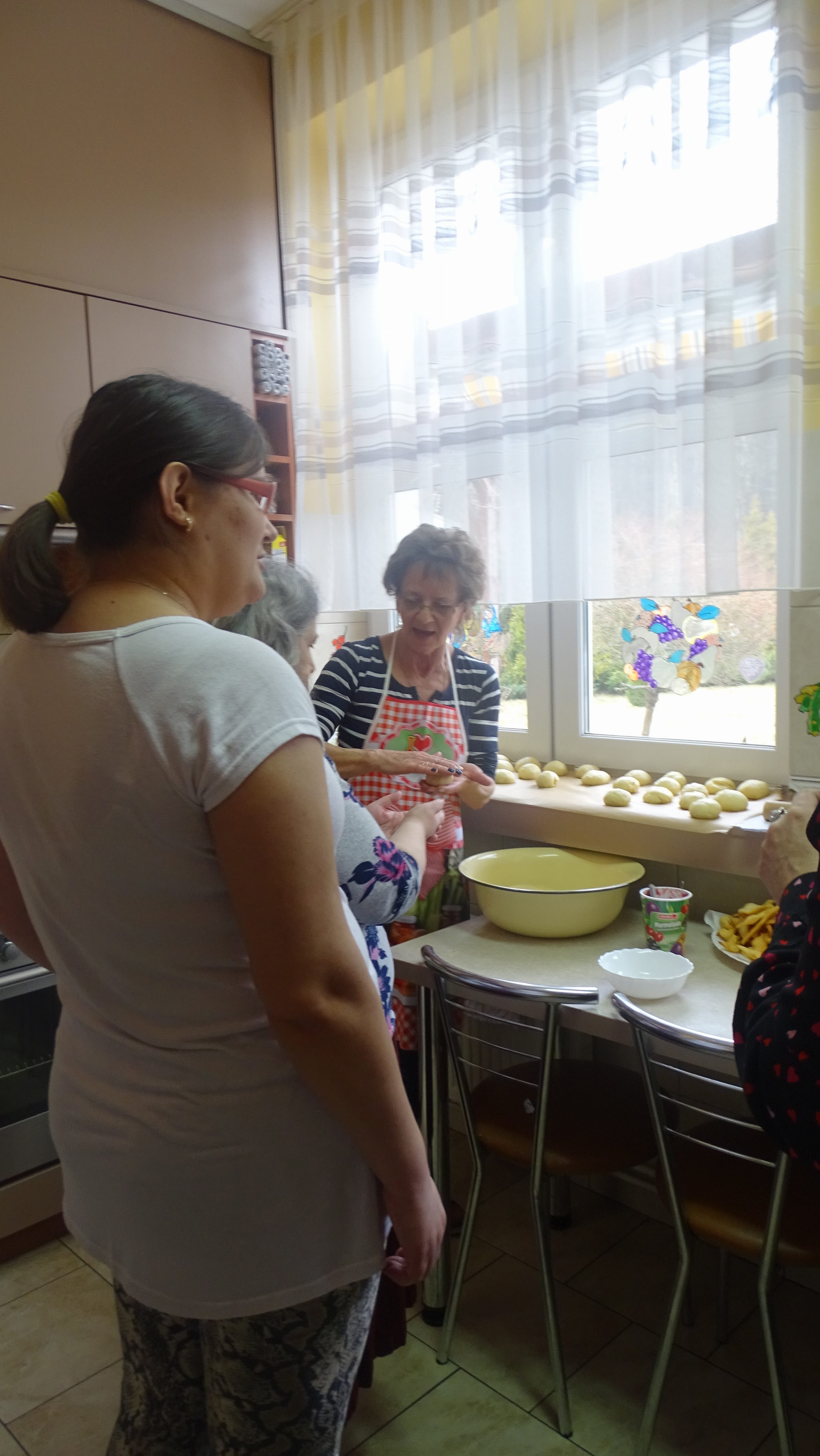 Po przyjeździe gości podzieliliśmy się na grupy jedni wyrabiali ciasto i formowali pączki
