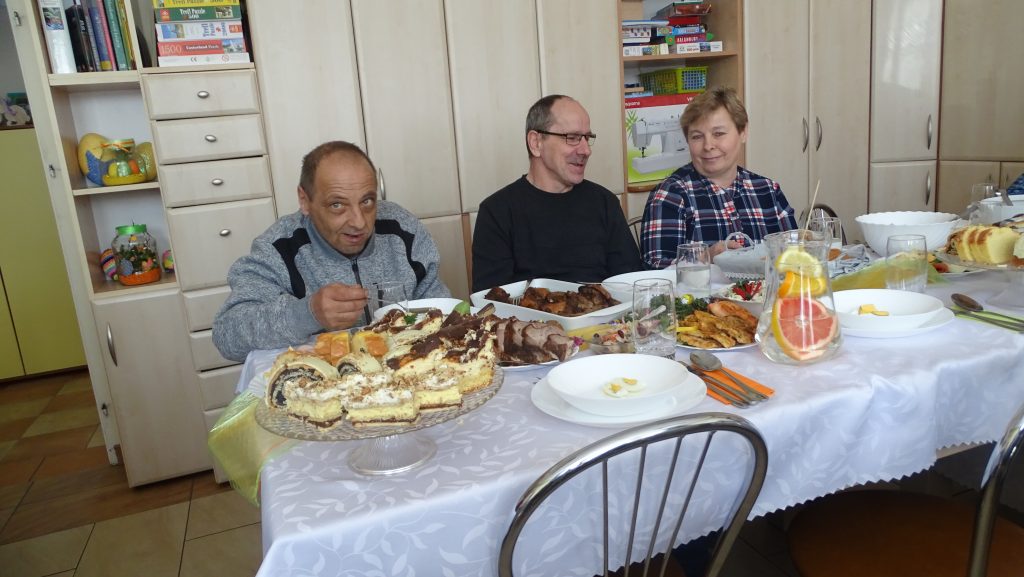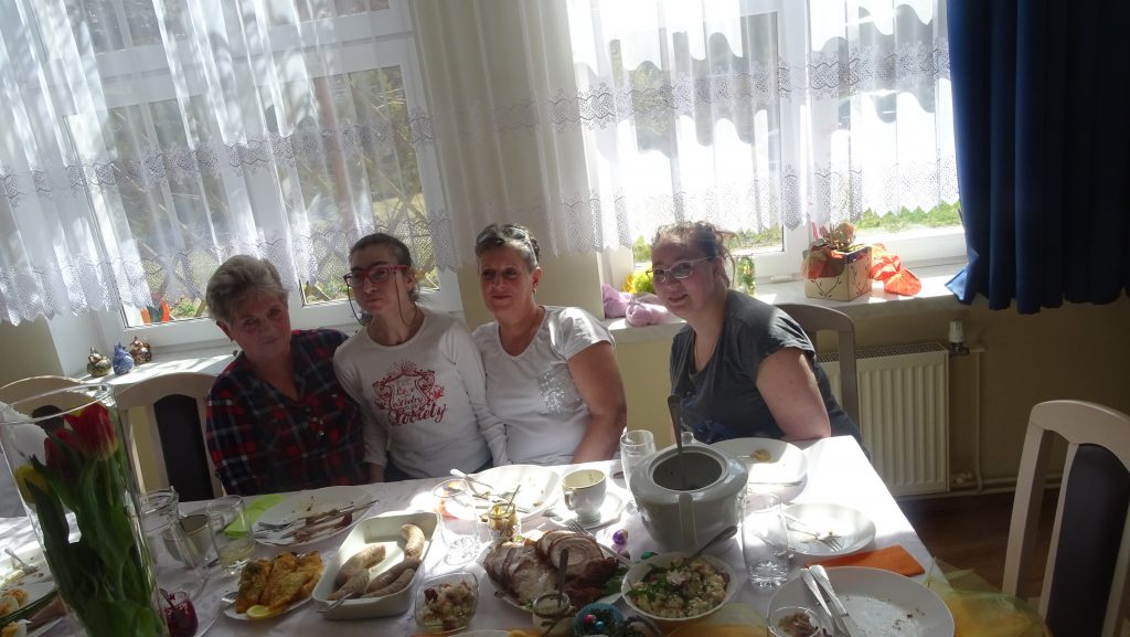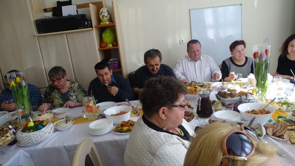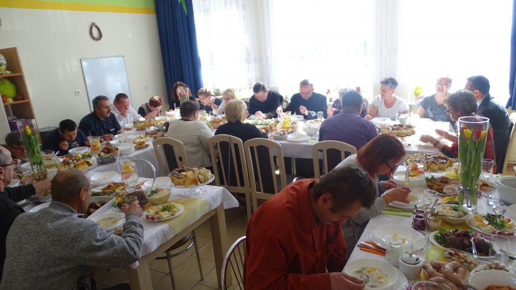 Dzisiaj w naszym Domu odbyło się Śniadanie Wielkanocne. Na nasze zaproszenie przybyli goście m.in. Proboszcz Parafii Polanów ks. Jacek Maszkowski i Wikariusz ks. Marek Roskowiński, Proboszcz Parafii Ostrowiec ks. Mariusz Żołądkowicz, Pani Alina Karwala – Skorupa oraz rodziny Uczestników. Na naszym stole Wielkanocnym nie zabrakło tradycyjnych potraw oraz wspólnych rozmów.