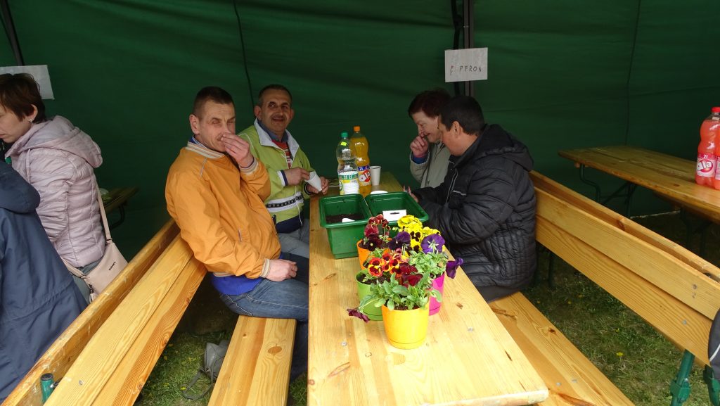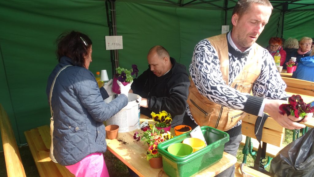24.04.2019 r. zostaliśmy zaproszeni przez Środowiskowy Dom Samopomocy z Biesiekierza na II Wiosenny Salon Ogrodniczy. Atrakcją był pokaz florystyczny, w wykonaniu pani Anny Just , która zaprezentowała jak można ozdabiać np. nasze balkony kwiatami doniczkowymi, oraz przekazała wiedzę w jaki sposób wyhodować – kiełki. Nasi Uczestnicy mieli okazje samodzielnie zasiać kwiaty w doniczkach, przesadzić do ozdobnych doniczek bratki, a także nauczyć się siać nasiona rzodkiewki i brokuła, w specjalnych kiełkownikach, które później okazało się, że były prezentami dla Nas . Na koniec spotkania był poczęstunek- zupa ogórkowa i kiełbaski z grilla. Dziękujemy za wspaniałą zabawę oraz mamy nadzieję, że ponownie spotkamy się za rok.