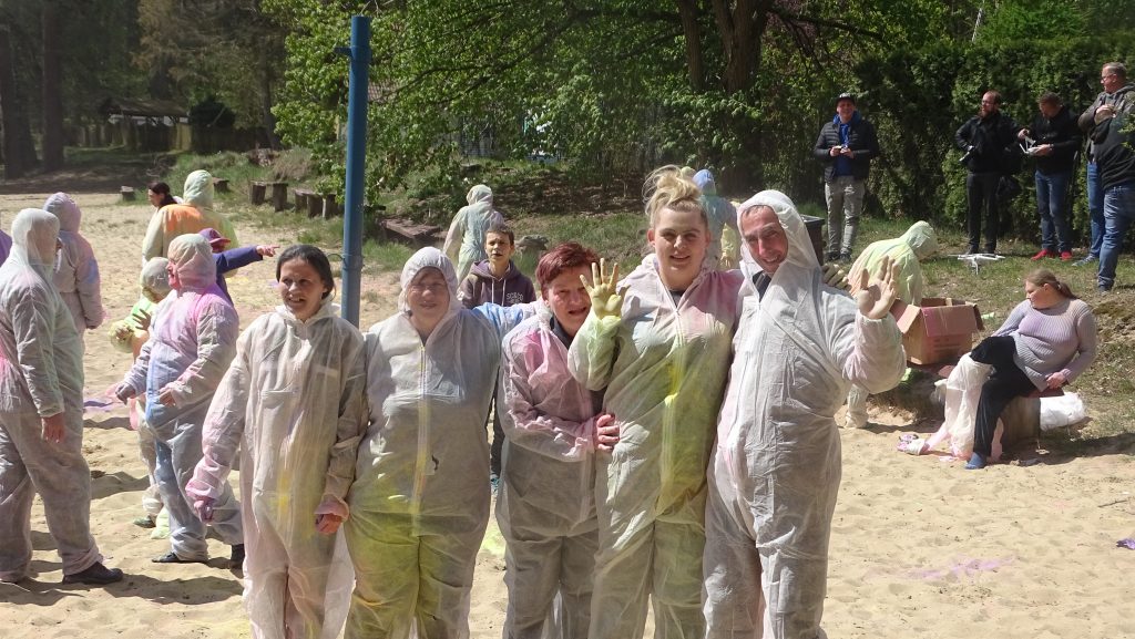 Dnia 07.05.2019 r. na zaproszenie Środowiskowego Domu Samopomocy w Kępicach zostaliśmy po raz kolejny zaproszeni na Wielką Integracyjną Europejską Majówkę w Korzybiu. Na początku w kolorowym korowodzie przeszliśmy przez całe Korzybie nad jezioro. Jak co roku organizatorzy stanęli na wysokości zadania i zorganizowali pełną atrakcji imprezę w przepięknym plenerze nad jeziorem. Było wiele atrakcji wozy strażackie do zwiedzania jak i radiowóz policyjny w tym pokazy psa policyjnego. Do wyboru mieliśmy pyszne jedzenie oraz słodkości jak ciasto oraz wata cukrowa. Przygotowana przez Nas sałatka również wszystkim bardzo smakowała. Jedną z głównych atrakcji była „walka” kolorowymi kredowymi farbami. Zostaliśmy ubrani w specjalne kombinezony, każdy z nas otrzymał farbę i rzucaliśmy w siebie. Cała plaża wyglądała przepięknie, gdy była w tęczowych kolorach. Bardzo serdecznie dziękujemy za zaproszenie. Zapraszamy do obejrzenia naszej fotogalerii.