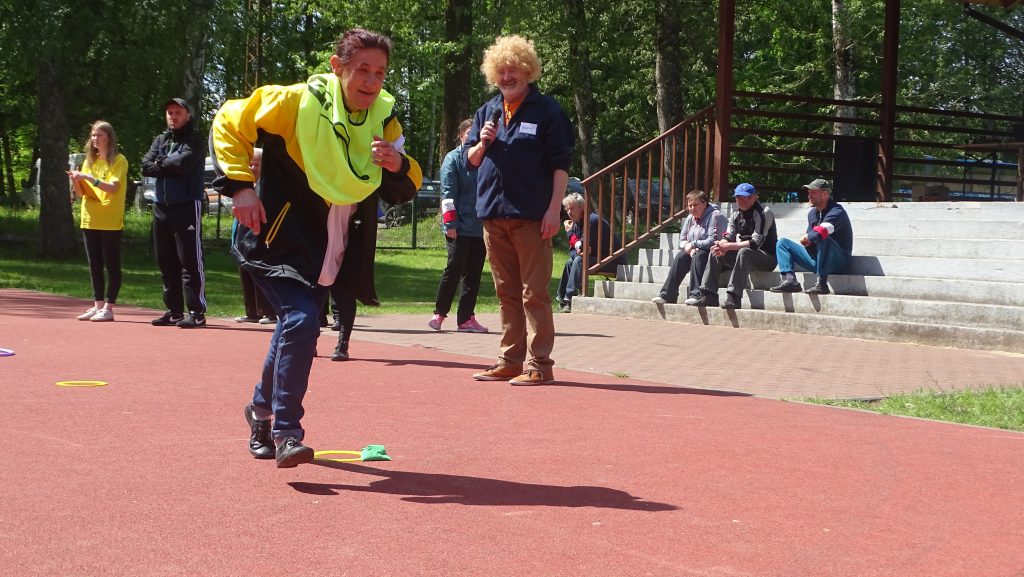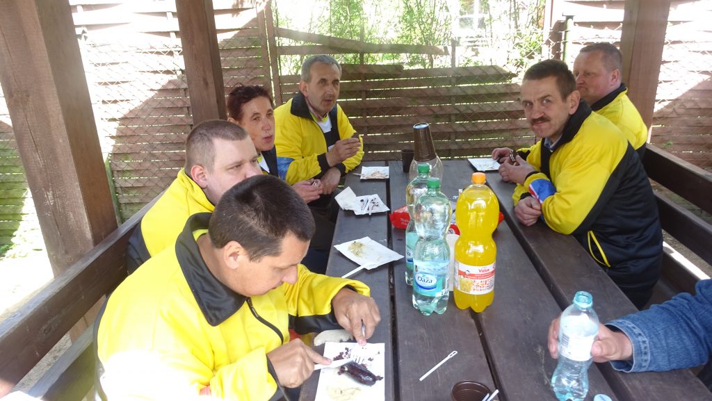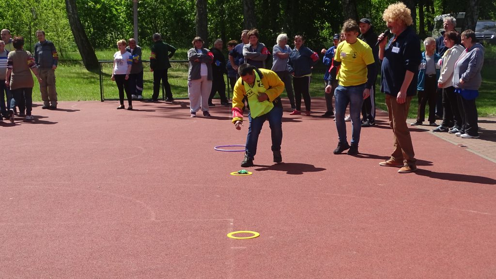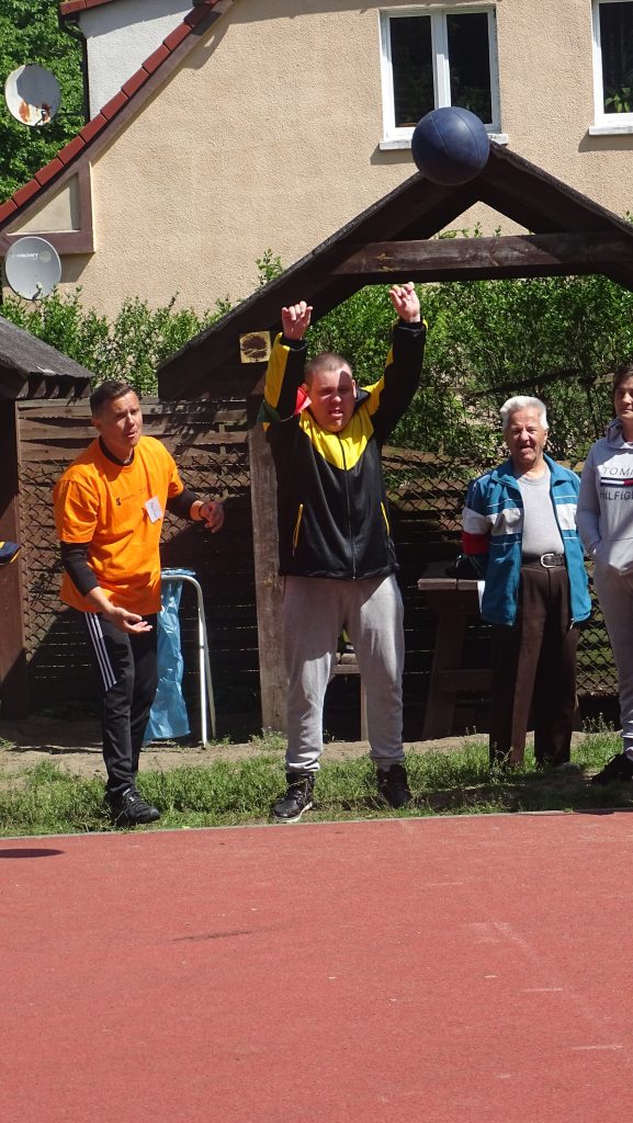 o pogodę, aczkolwiek wyszło słońce i mogliśmy bez przeszkód uczestniczyć we wszystkich fantastycznych konkurencjach sportowych przygotowanych przez organizatorów. Konkurencję były różne- trudne takie jak chodzenie w nartach w 4 – osobowych drużynach, strzelanie kijem hokejowym do bramki czy tor przeszkód. Do łatwiejszych aczkolwiek, które również sprawiały wiele kłopotów był rzut piłką lekarską. Bawiliśmy się wspaniale. Podzielono nas na drużyny z różnych Państw. Każda drużyna miała swojego opiekuna. Wszyscy jak zwykle byli najlepsi a doping, który nam towarzyszył był jeszcze bardziej mobilizujący do „walki o zwycięstwo”. Dziękujemy za zaproszenie i wspaniałą, radosną zabawę.