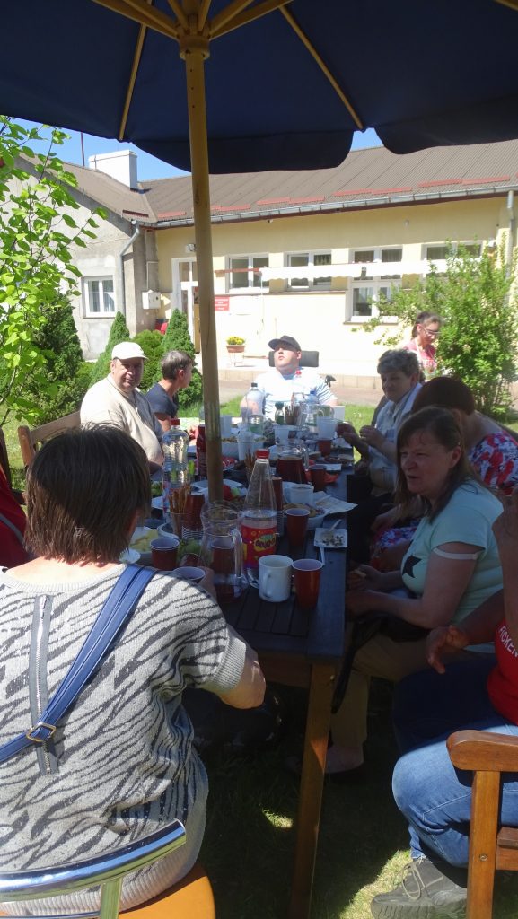 W dniu 03.06.2019 r. w piękny słoneczny i bardzo ciepły dzień spotkaliśmy się z naszymi przyjaciółmi z Sianowa. Przygotowaliśmy kilka propozycji przekąsek grillowych m.in. kurczak, mięso, kiełbasa oraz burgery z indyka. Uczestnicy z ŚDS Sianów również zaskoczyli nas przepyszną sałatką oraz mnóstwem owoców. Piekliśmy, smażyliśmy – radości nie było końca. Spotkania z naszymi przyjaciółmi sprawiają, że wszystkie troski idą w dal a radosne rozmowy sprawiły, że początek tygodnia zaczął się wyjątkowo ….Dziękujemy za odwiedziny i do zobaczenia wkrótce.
