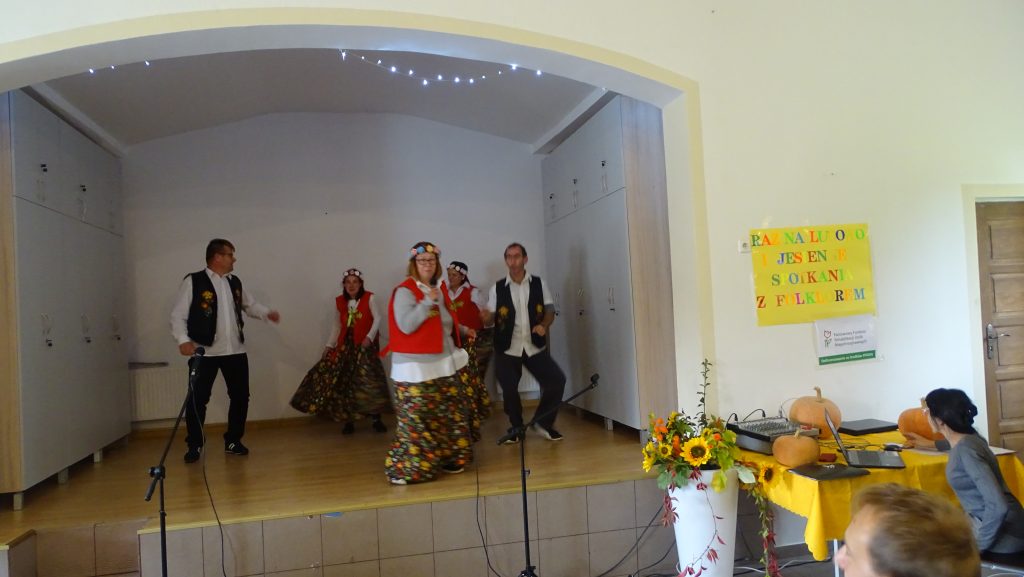 04.10.2019 r. na zaproszenie ŚDS Biesiekierz braliśmy udział w imprezie pt. „Raz na ludowo i jesienne spotkania z folklorem”. Tym razem naszym utworem było „Czerwone Jagody” wyglądaliśmy bajecznie w naszych strojach co również sprawiło, że mieliśmy więcej energii do śpiewania. Zabawa było bardzo udana. Mnóstwo pozytywnej energii, radosnych rozmów i co najważniejsze…najlepsze towarzystwo.