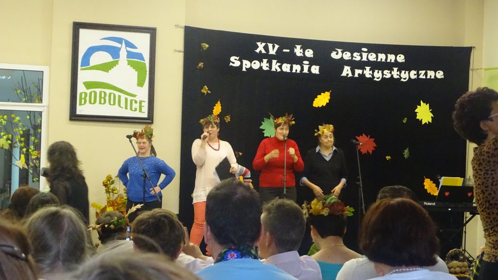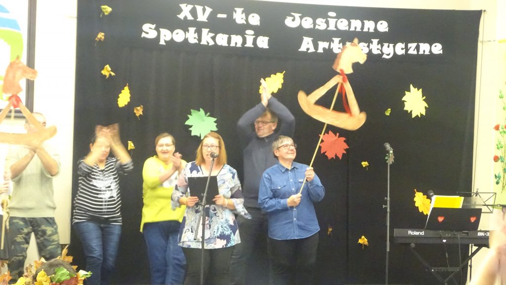 23.10.2019 r. po raz kolejny braliśmy udział w XV Jesiennych Spotkaniach Artystycznych w Bobolicach. Impreza odbywała się w Domu Kultury. Zaprezentowaliśmy piosenkę pt.”Konik na biegunach”- Urszuli. Dziękujemy za zaproszenie oraz wspaniałą zabawę. Jak zwykle powracaliśmy z wspaniałym nastrojem.