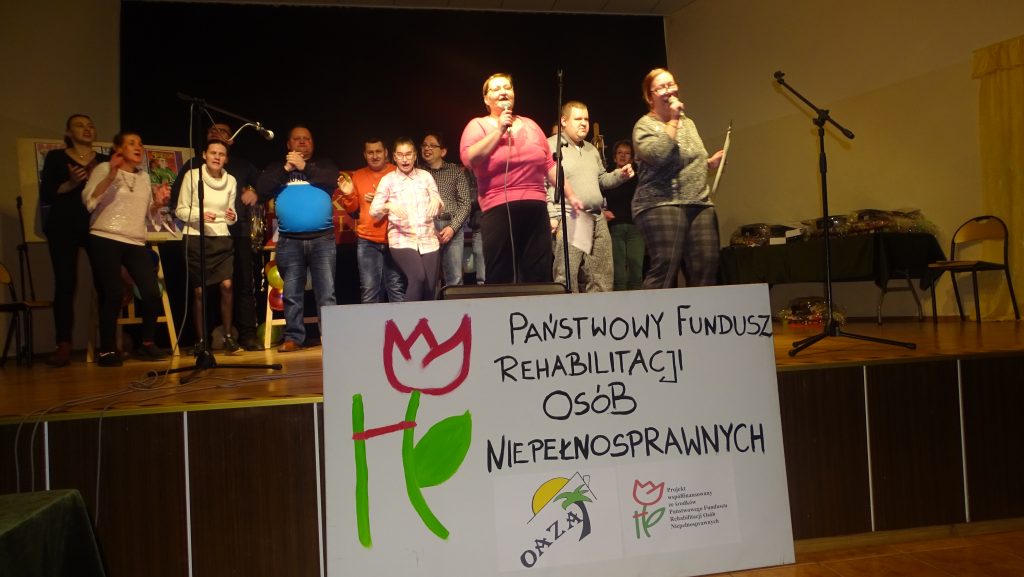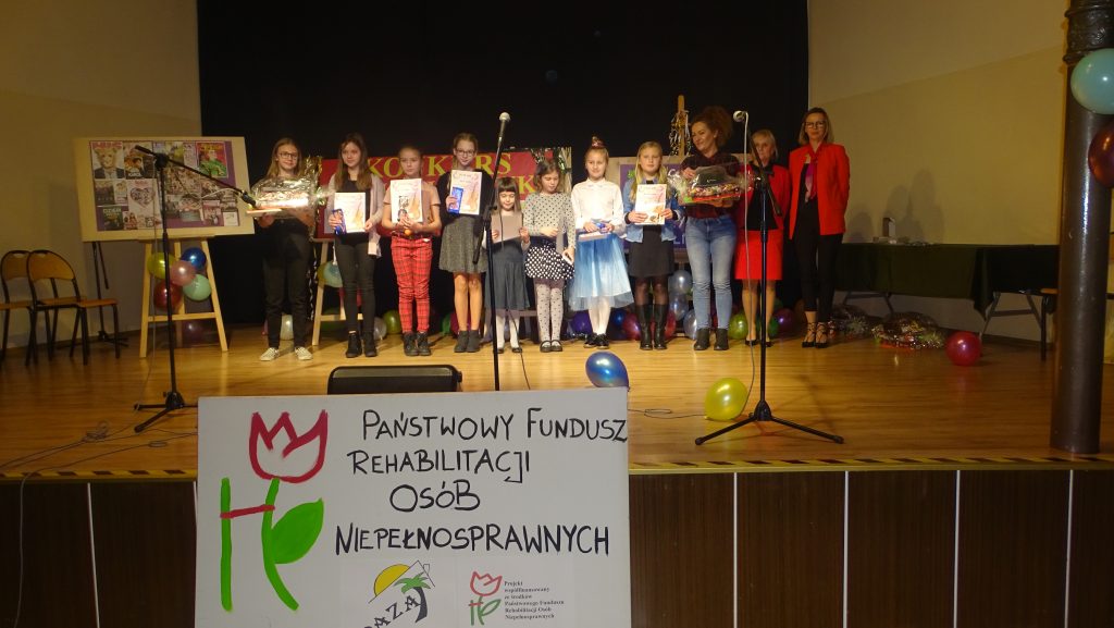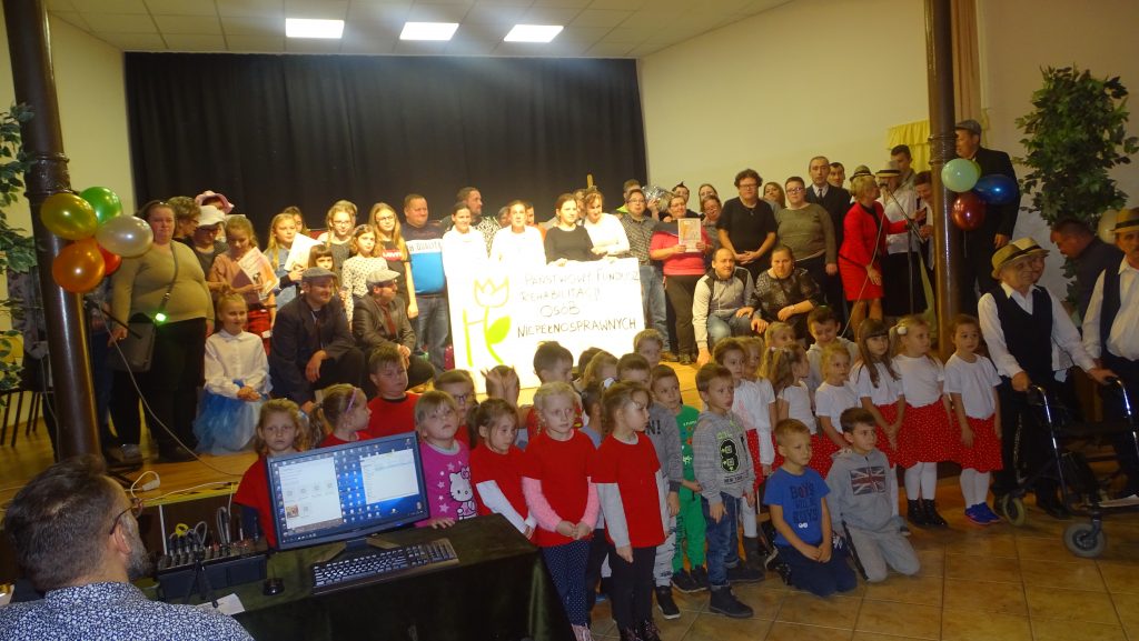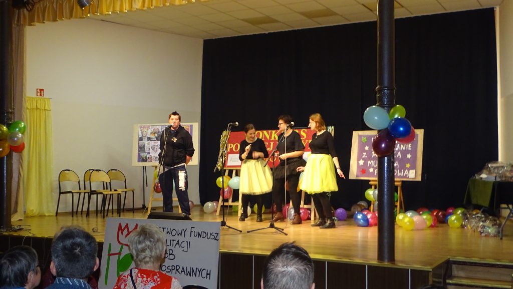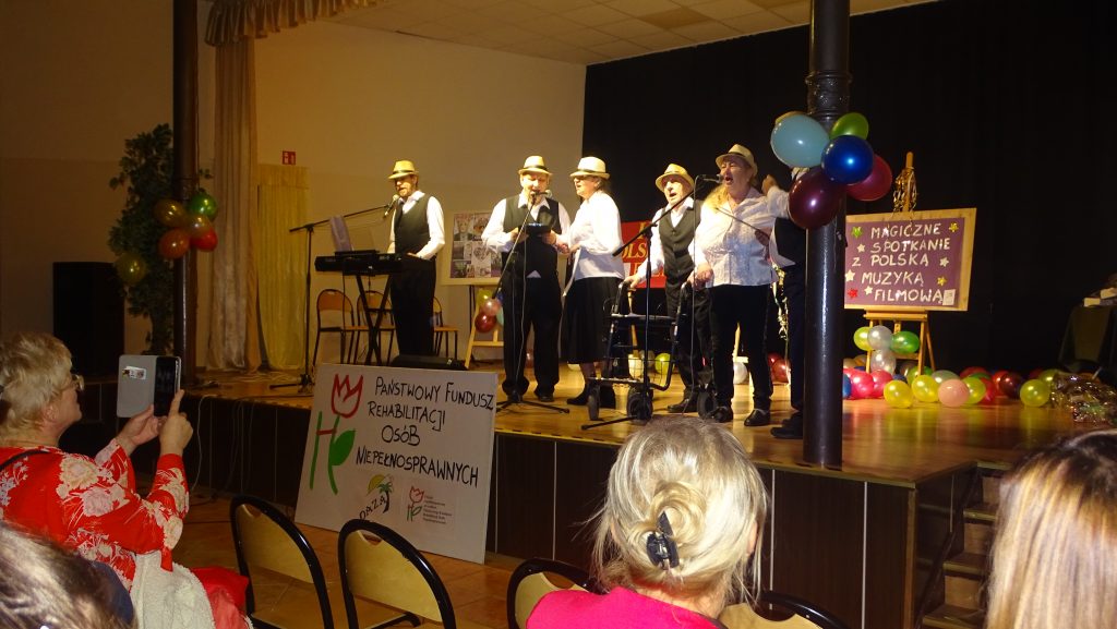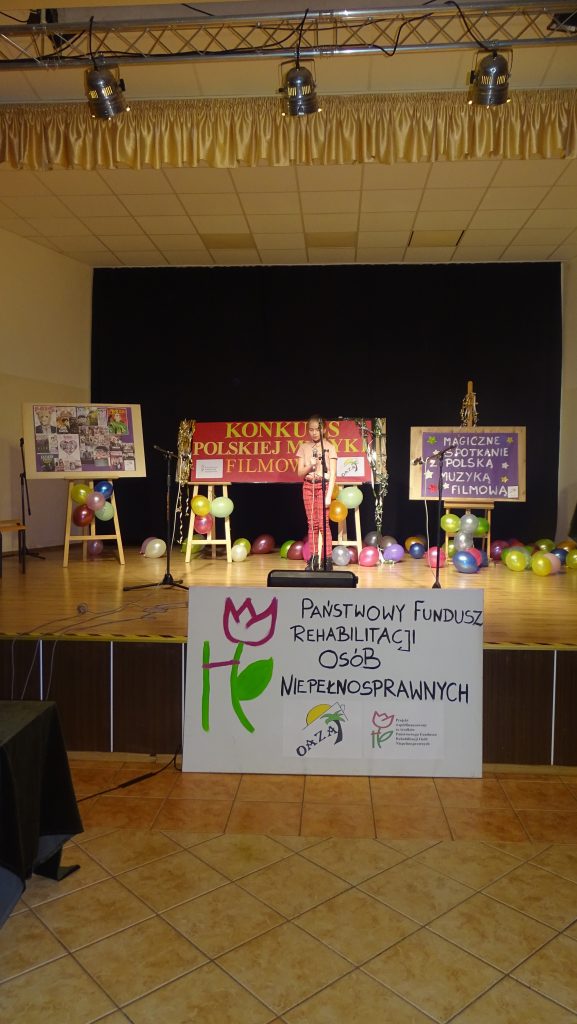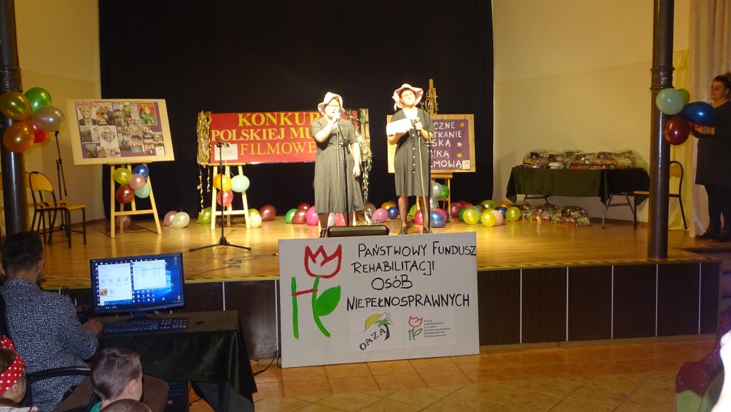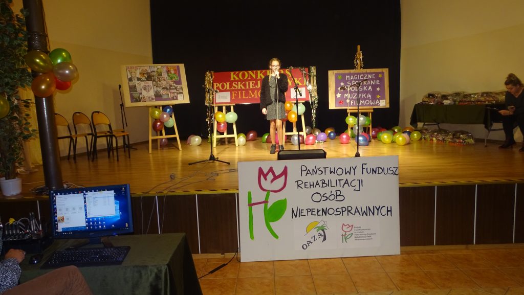 Dnia 13.11.2019 r. zorganizowaliśmy Konkurs Polskiej Piosenki Filmowej pt: „Magiczne Spotkanie z Polską Muzyką Filmową” w Polanowskim Ośrodku Kultury i Sportu. Gościliśmy nie tylko zaprzyjaźnione Środowiskowe Domy Samopomocy a także Przedszkolaków z Przedszkola Gminnego w Polanowie, Uczniów ZSP w Polanowie oraz Mieszkańców Domów Pomocy Społecznej z Naszej Gminy. Swoją obecnością zaszczycili nas także Burmistrz Miasta i Gminy Pan Grzegorz Lipski, Dyrektor M-GOPS w Polanowie Pani Halina Serwecińska oraz Dyrektor POKiS Pani Anna Sznyter. Odwiedziła nas także Pani Dyrektor Przedszkola Gminnego w Polanowie Pani Elżbieta Sekuła. Zabawa była wspaniała. Znane piosenki z najróżniejszych filmów zabrzmiały na scenie. U nikogo nie zauważono tremy. Wszyscy znakomicie przygotowani. Oczywiście jak zawsze podczas konkursu nie zawiódł nas Pan Wiesław, który dbał o nagłośnienie oraz odpowiednie podkłady dla Uczestników. Po zakończeniu zostały wręczone nagrody oraz odbył się poczęstunek dla wszystkich. Oczywiście wielką niespodzianką sprawiła nam publiczność która dowiedziawszy się o naszym konkursie bardzo chciała nas zobaczyć i wysłuchać wszystkich wykonawców. Projekt został współfinansowany przez Państwowy Fundusz Rehabilitacji Osób Niepełnosprawnych.