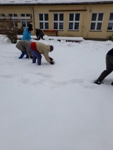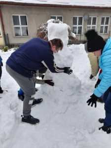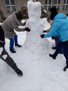 Dzisiejsze zajęcia na dworze polegały na ulepieniu bałwana.