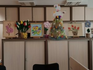 Wystawa Naszych prac wiosennych w Miejsko – Gminnym Ośrodku Pomocy Społecznej w Polanowie.
