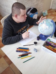O Ziemię powinien dbać każdy mieszkaniec i to nie tylko w jeden dzień roku ale przez cały rok. Uczestnicy naszego Domu na wykonanym plakacie pokazali jak należy segregować śmieci, kolorowaliśmy kulę ziemską, malowanie drzew, wykonywanie kwiatów oraz oglądaliśmy i czytaliśmy książki przyrodnicze. Prowadziliśmy dyskusję o najprostszych zadaniach sprzyjających ochronie środowiska. Możemy wykonywać proste zadania tj.: