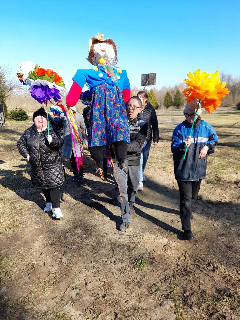 Marzanna, zimowa panna, w słomianej sukience rozpostarła ręce. W lęku drżąca cała, topić się nie chciała. Z rozwichrzonym włosem, ognie ją poniosą. Niechaj śnieg i mrozy wiośnie się ukorzą i porą radosną zawitaj nam wiosno!