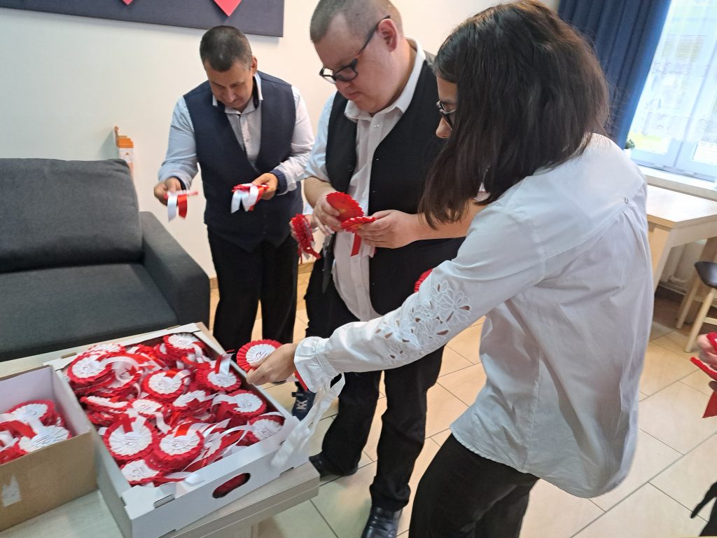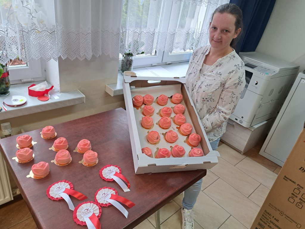 Przekazanie kotylionów do Urzędu Miejskiego w Polanowie oraz otrzymaliśmy słodkie różyczki od przyjaciela naszego Domu.