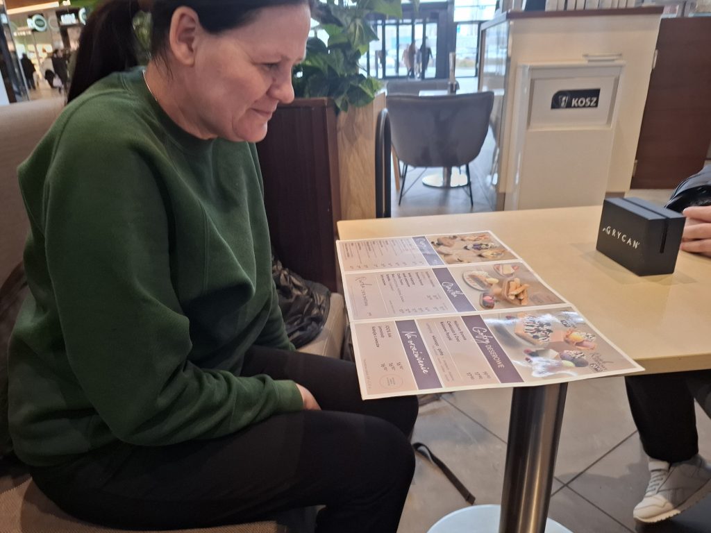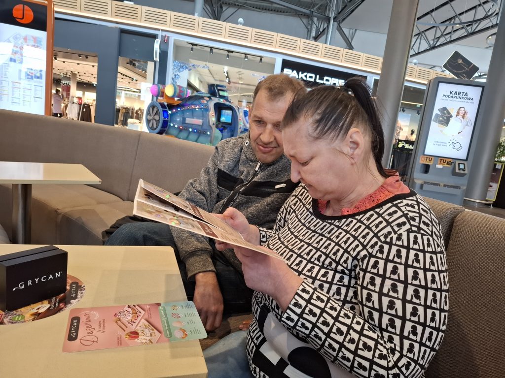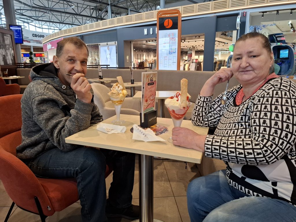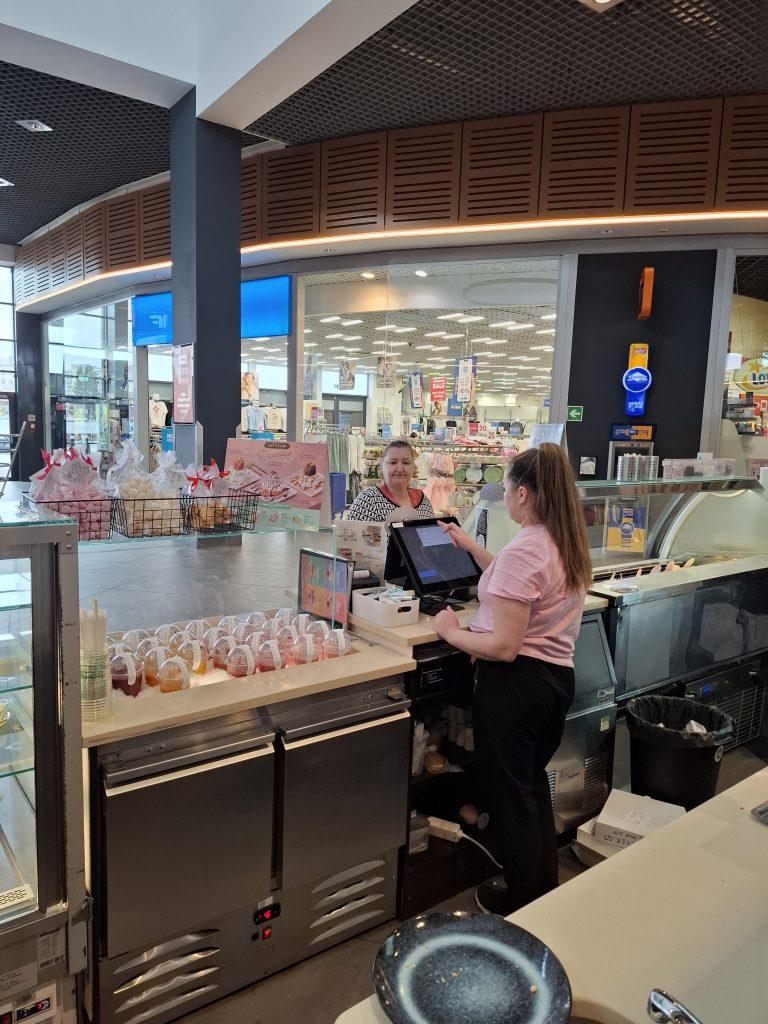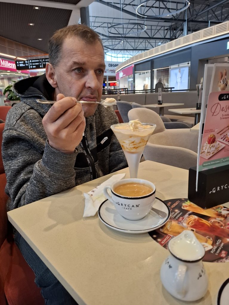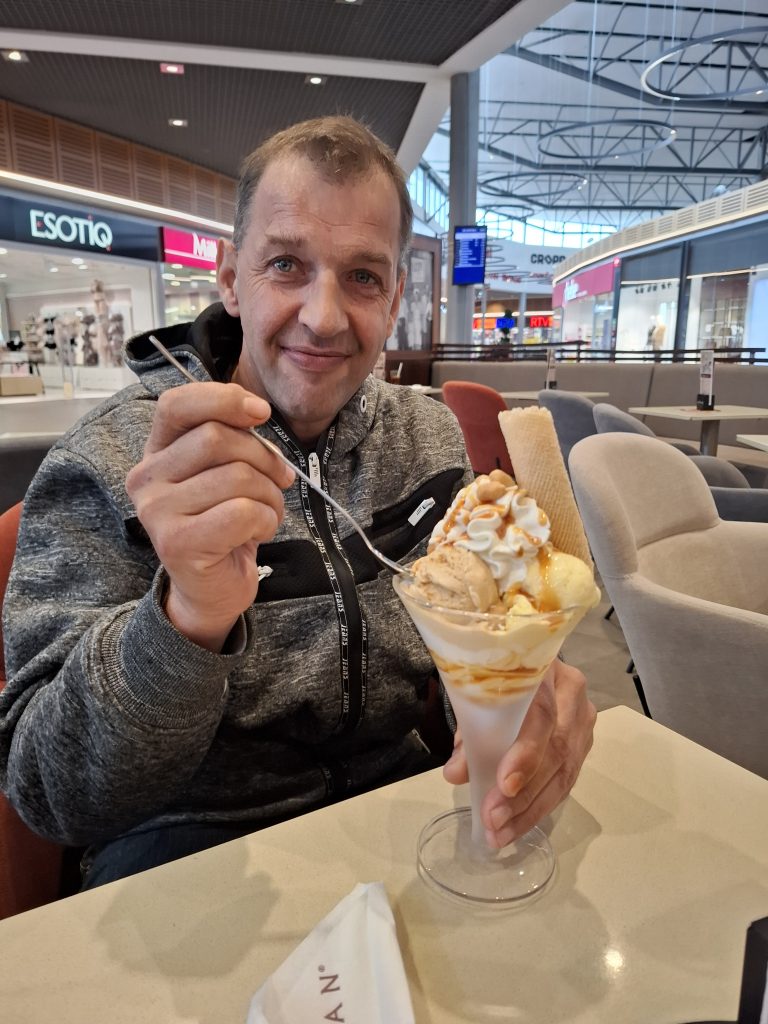 Dzisiaj Grażyna, Karolina, Weronika i Marian pojechali do Centrum Handlowego Jantar w Słupsku. W kawiarni Grycan zamówiliśmy puchary deserów lodowych, każdy z nas wybrał inny smak: pistacjowy, słony karmel, malinowy i borówkowy![]()