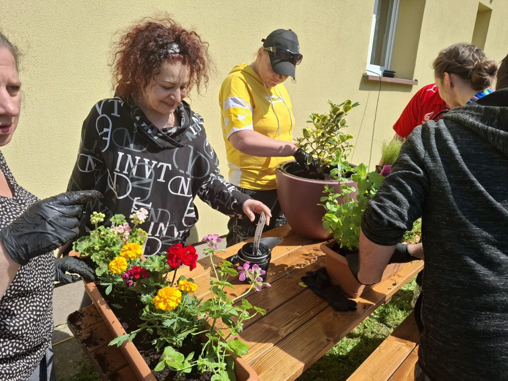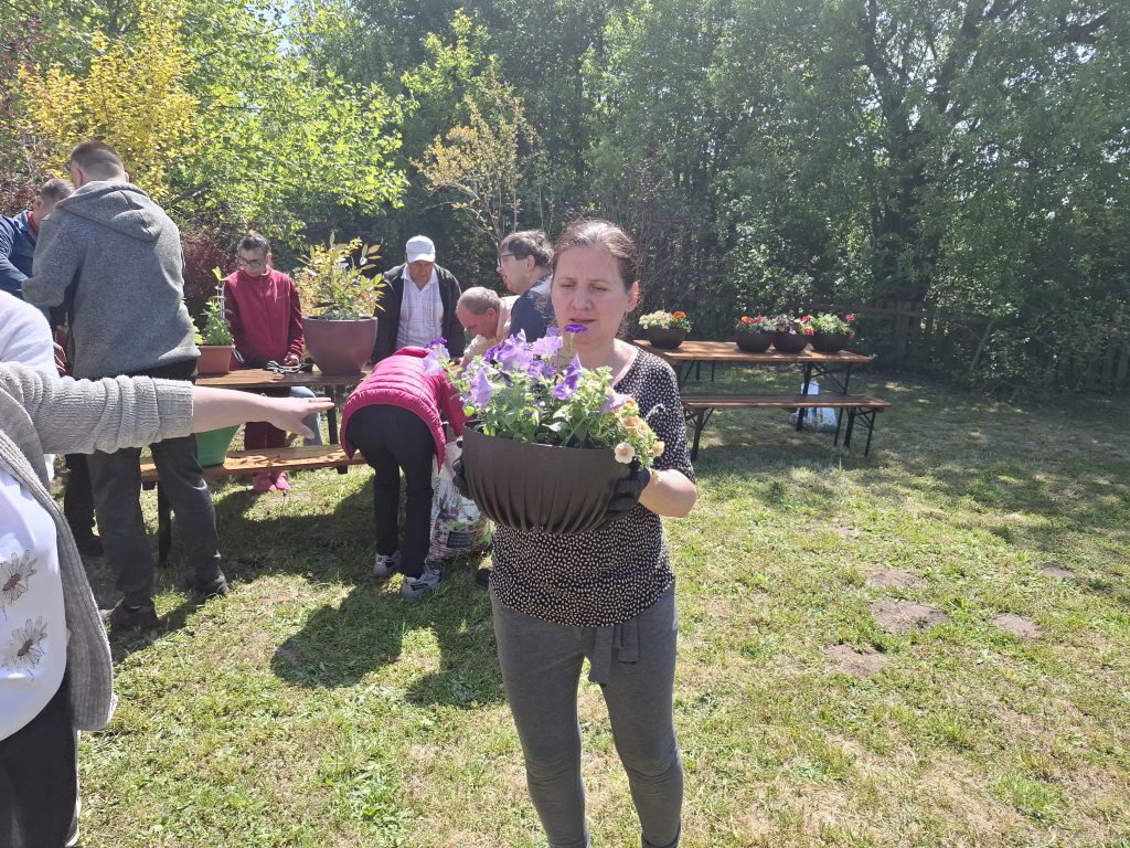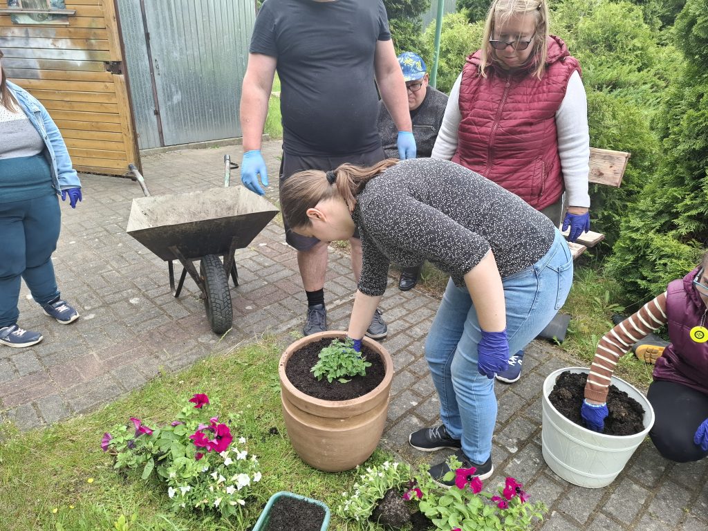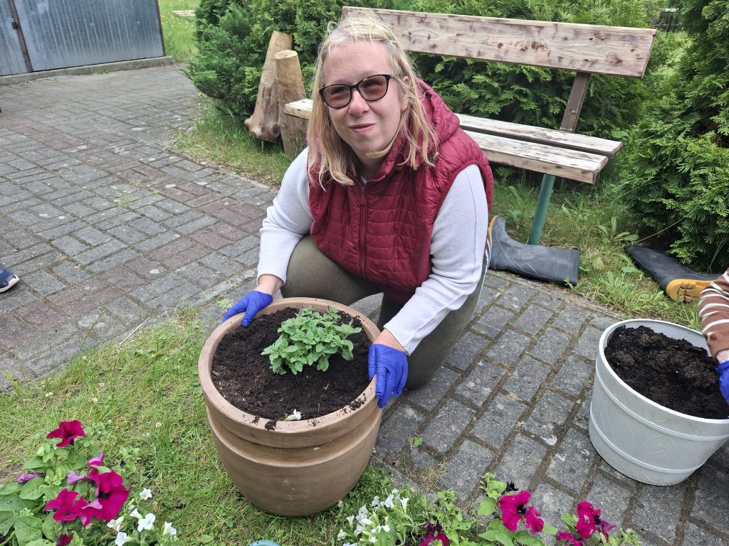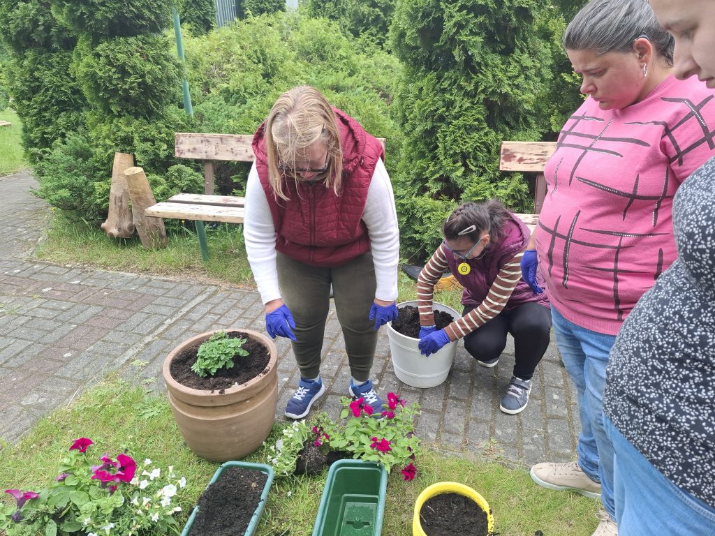 Spacerujemy z kijkami nordic walking nad jezioro🚶♀️🚶i sadzimy kwiaty🎍🪴🌷
