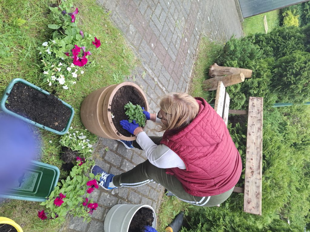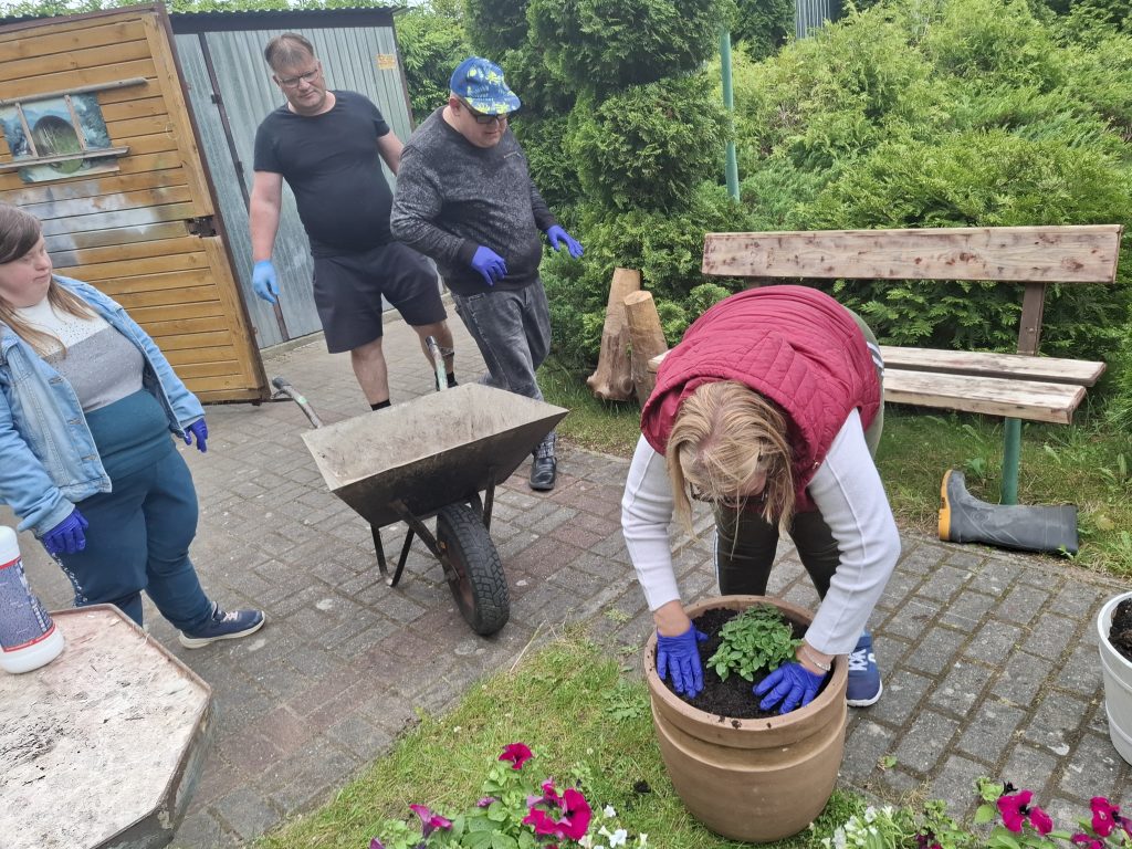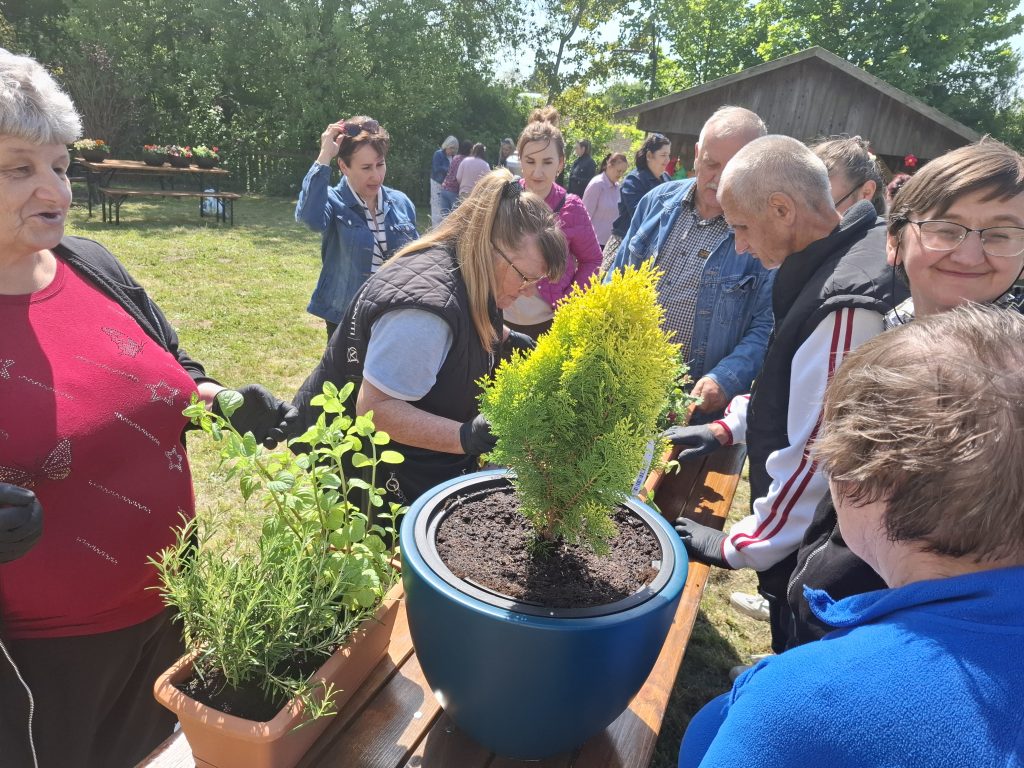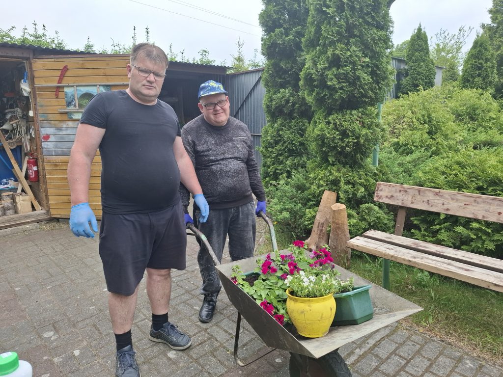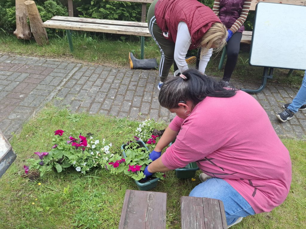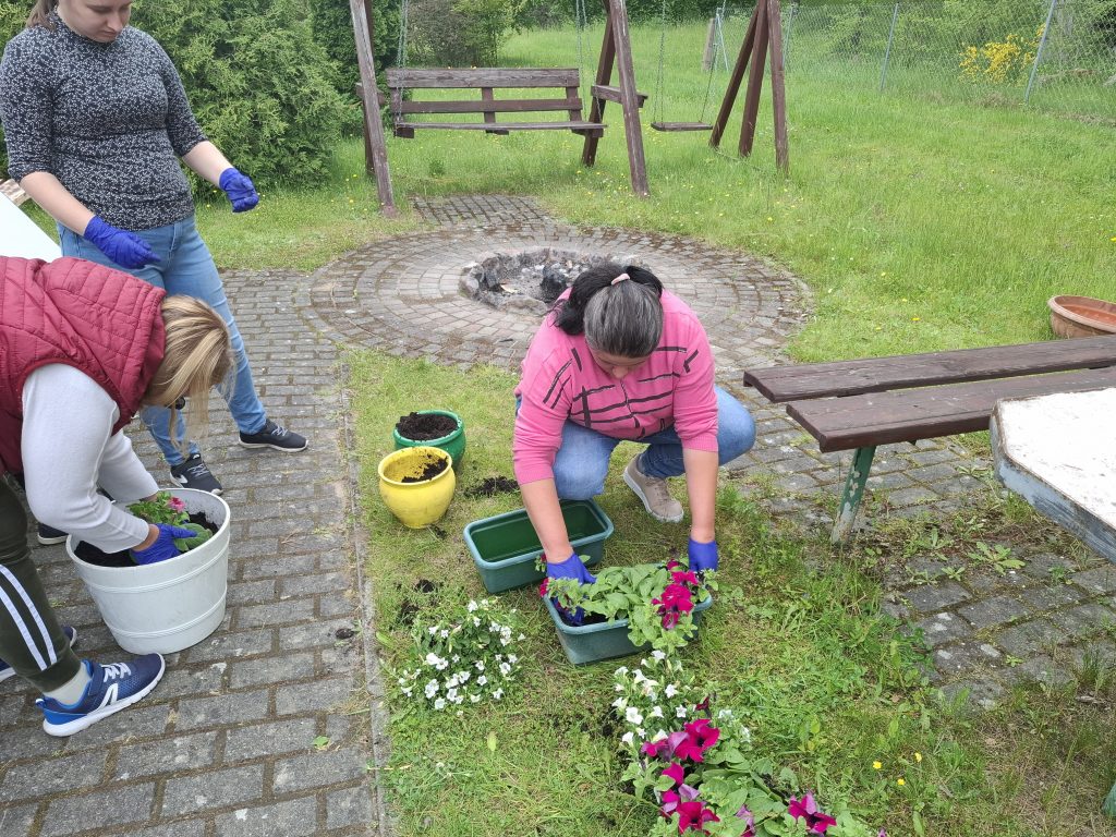 Spacerujemy z kijkami nordic walking nad jezioro🚶♀️🚶i sadzimy kwiaty🎍🪴🌷